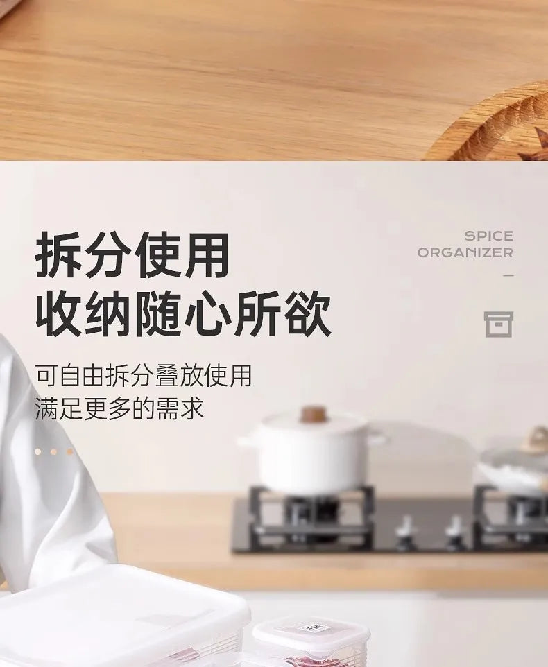 Food Storage Container 6 Grids Vegetable Fruit Fresh-keeping Box with Lid for Refrigerator Kitchen Spice Seasoning Storage Jar