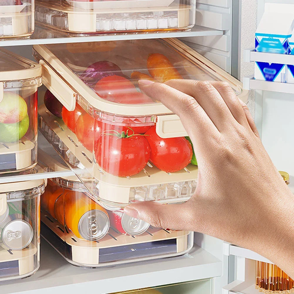 Portable Food Storage Container Large Capacity Airtight Freshness Box with Drain Plate for Outdoor Picnic Camping Use